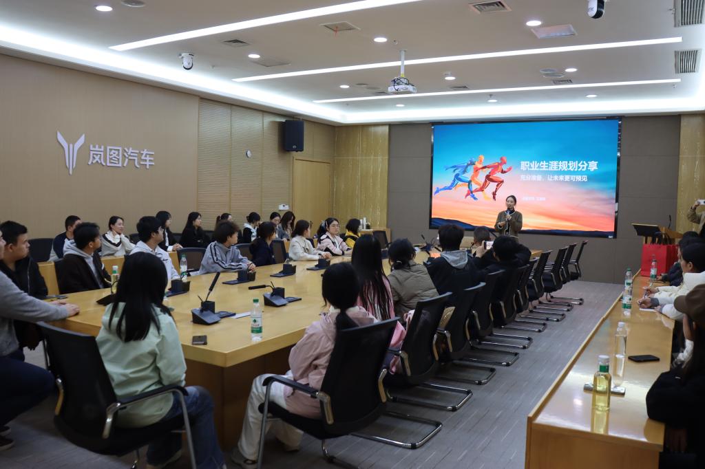来到企业会议室,湖北大学校友、岚图学苑王立娟以“职业生涯规划”为主题,从职业认知、人才特质和面试技巧三个方面,向同学们开展了一场走进生产一线的“职场微课堂”讲座。她寄语同学们培养自己的学习力、责任心和坚韧性,以更好地适应职场生活。