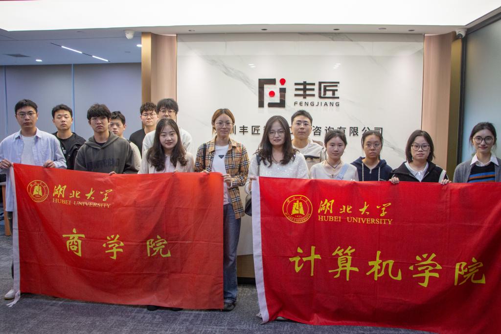 在江汉区委组织部工作人员的带领下,师生先后走访恒生电子股份有限公司、丰匠数智科技有限公司、武汉金融街集团总部三家企业,了解从金融后台系统开发到前端产品落地的全链条流程,重点考察数字经济在产业服务、城市运营中的创新应用。