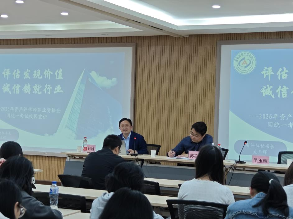 随后,湖北省资产评估协会秘书长吴玉辉开展行业发展专题宣讲。他结合详实的数据与生动的案例,深入剖析了资产评估行业的现状、未来趋势及人才需求标准,同时鼓励同学们将个人理想融入行业发展大局,在时代的浪潮中找准定位。